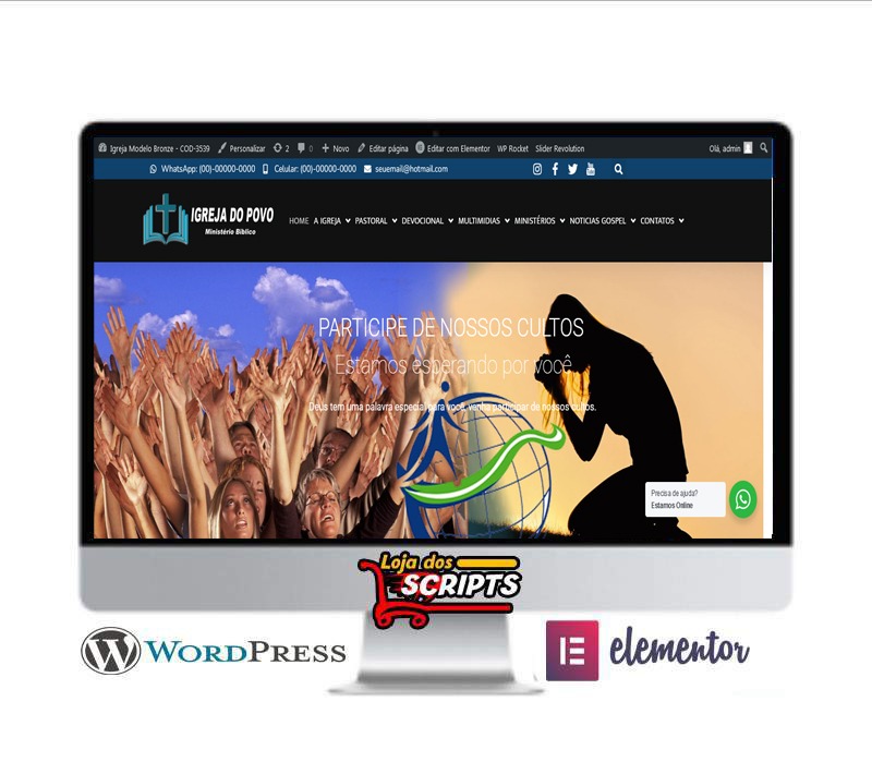 Site para Igrejas Evangélicas super completo com painel administrativo bem fácil e bem simples, 100% responsivo criado em plataforma WordPress modificado, sistema Elementor com arrasta e solta, acompanha vídeo aula de instalação passo a passo, e ainda daremos total suporte durante a instalação, agora você vai ter o site de sua igreja de forma bem simples e bem profissional, A entrega do script é automática, comprou ja baixa na hora pois nosso sistema de entrega é automático, bastando apenas entrar em sua conta em nossa loja e ja baixar o arquivo e as video aulas de instalação.